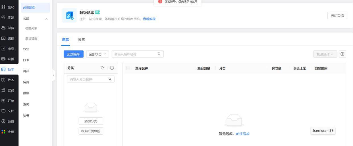 填信息:题库名称、摘要安排上,分类能设三级(比如 考公→行测→言语理解),用户找题不迷路