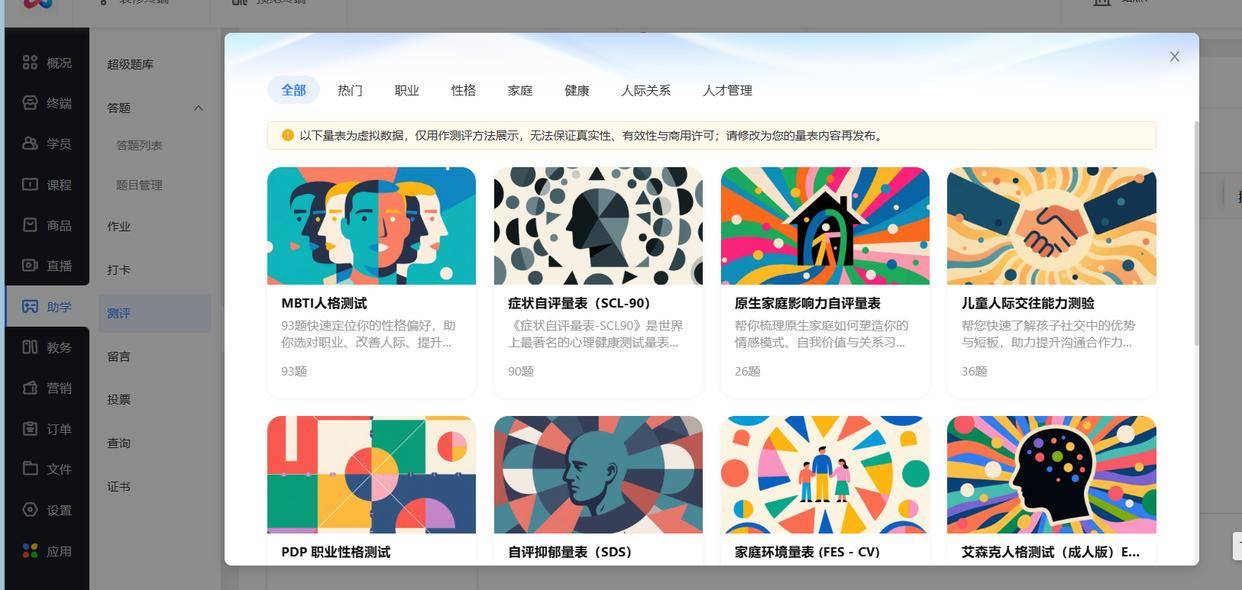 题库搭好别停!还能解锁测评功能,性格测试、职业测评、人格测试都能做: