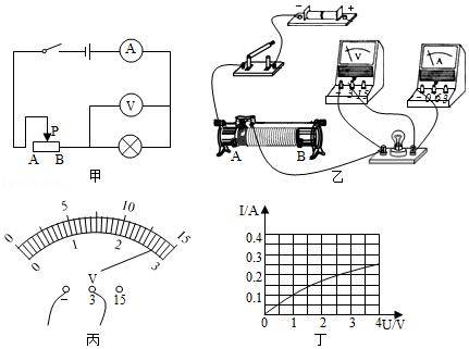 (3)排除故障后,闭合开关,移动滑片,电压表的示数如图丙所示,其示数为________V.为了测量小灯泡的额定功率,应将滑动变阻器的滑片向________(选填A端或B端)滑动。