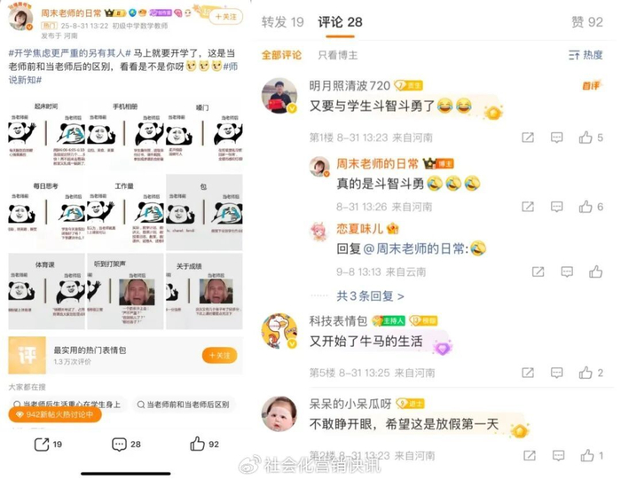 开学不只是学生的专利,老师们也承受着双重暴击,开学焦虑更严重的另有其人话题下,有老师晒出开学检查作业时的心塞瞬间,刚打开第一本作业,就看到学生写着我赌你不查作业;也有老师开学第一周,每天靠咖啡续命,经开始期待国庆假期了,就连校长们都在朋友圈感慨步数日均2万步。