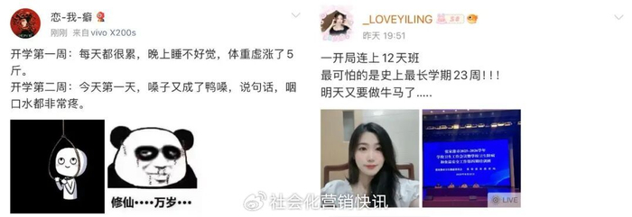开学哪有不疯的,从手忙脚乱收拾行李的新生,到熬夜赶作业的老生,开学季的焦虑真实得让人心疼。他们急需情绪上的安抚、精神上的激励和生活中的小确幸,而品牌们也洞察到这股过于美丽的精神状态,纷纷带入学生身份,当起学生们的嘴替。