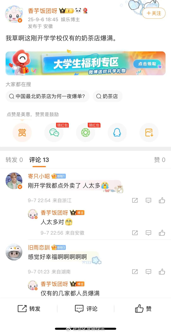 NPC们也没闲着,学校周边的奶茶店老板笑开了花,开学第一天直接爆单,开学第一杯,不得整起来啊;出租车司机在群里互通有无:这几天学校周边堵车,绕行!王者峡谷和谐了,游泳池清净了,就连狗子也终于可以自由了。