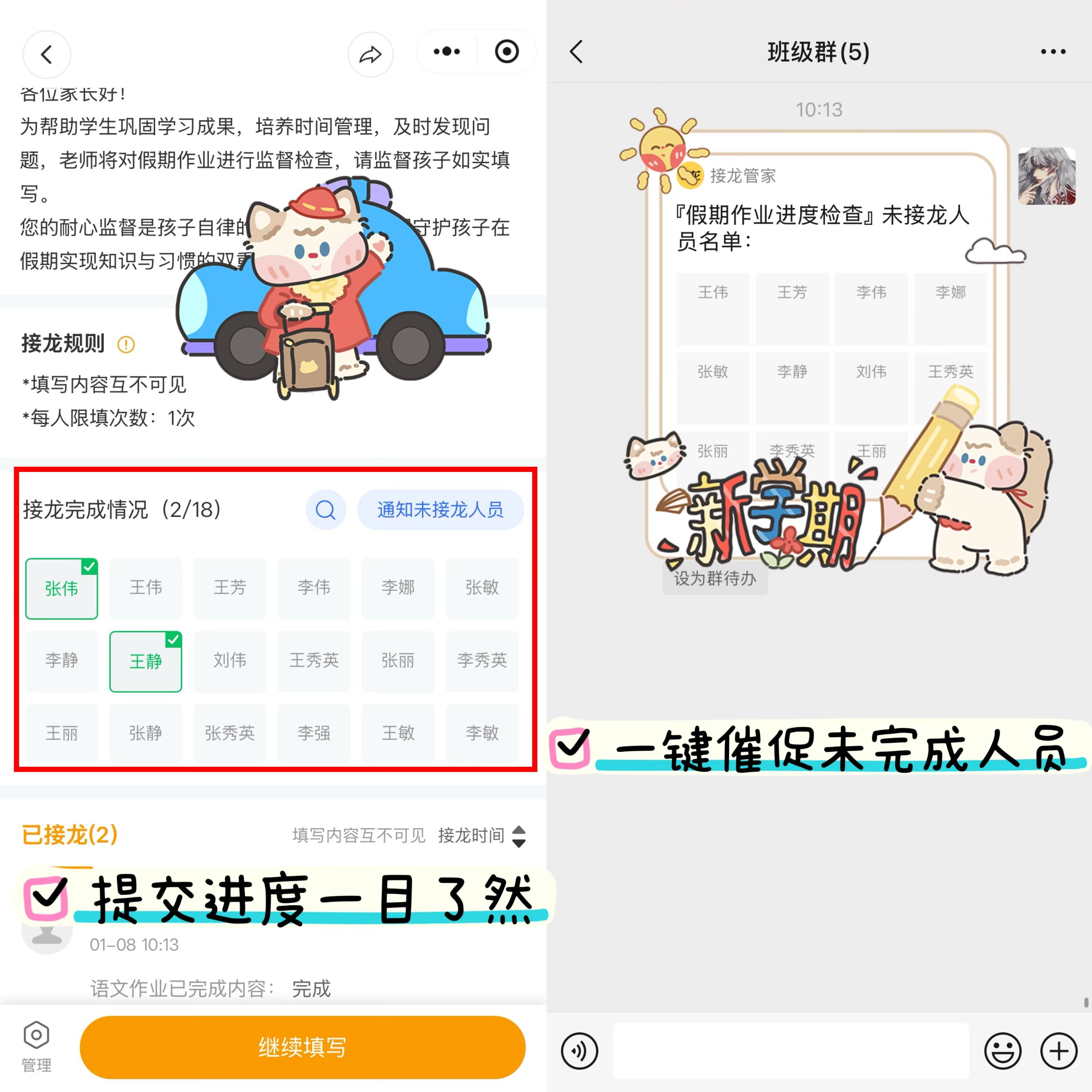 要是有学生没按时交,还能一键把提醒发到群里,漏交名单明明白白,再也不用逐个私聊催作业,效率直接拉满!