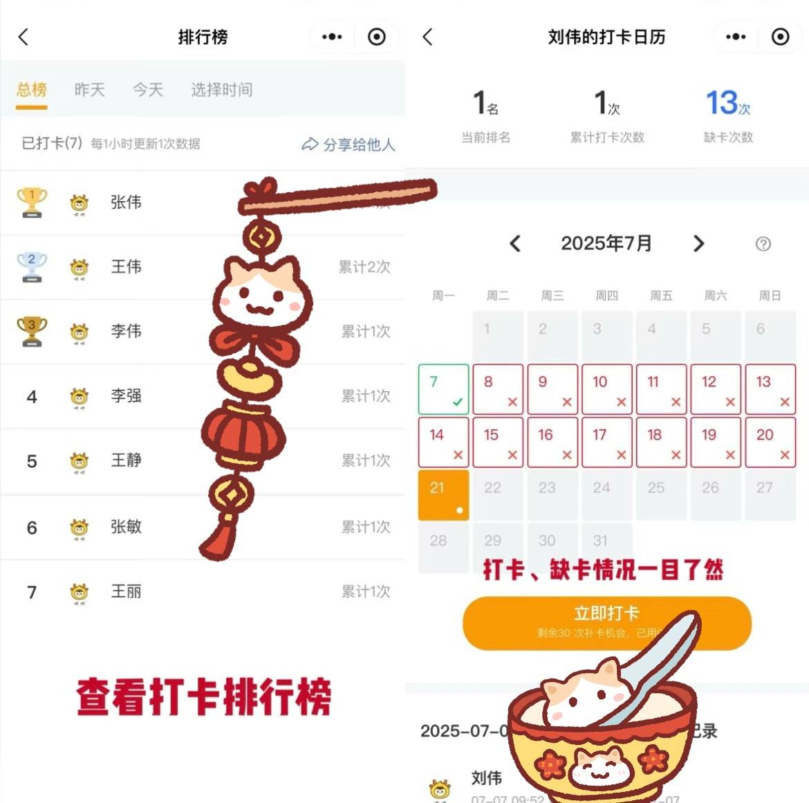 还能设置 打卡提醒,到点自动通知学生提交,再也不怕孩子忘记;打卡排行榜实时更新,谁打卡多、谁进度快一目了然,学生看着排名更有动力~