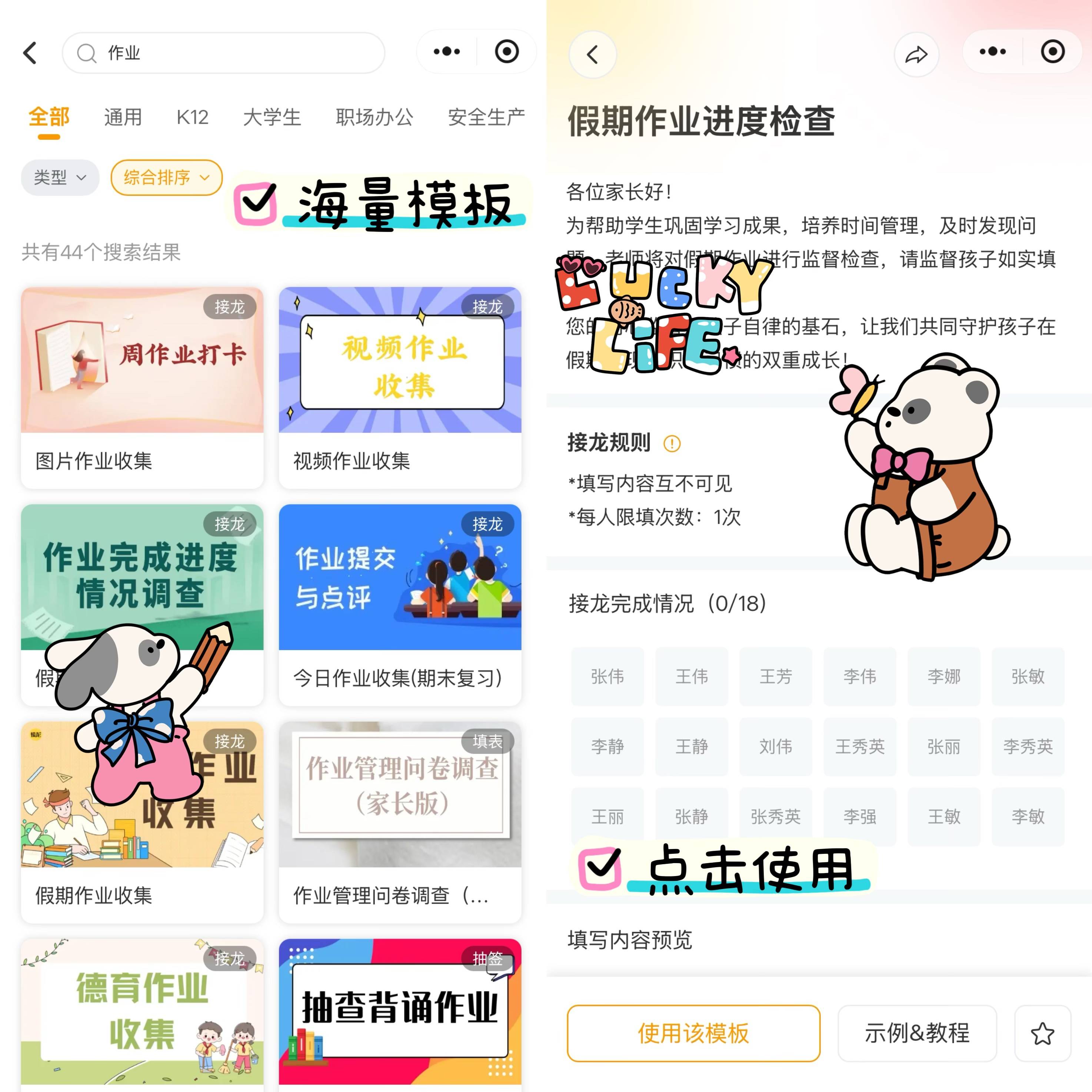 别愁!推荐老师们用「接龙管家」,期末复习和寒假作业管理一键搞定,轻松又高效!01 想收啥作业?表单项自由搭!有现成的作业模板,直接套用超方便。