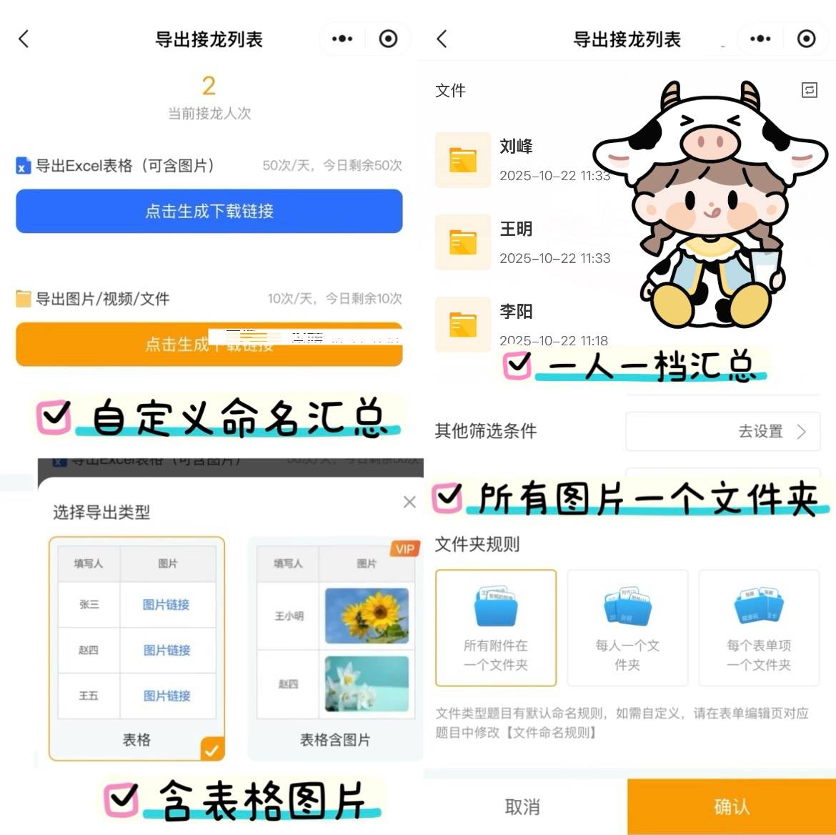 04 自动汇总存档 省去手动整理麻烦作业收完了?结果能随时导出保存,不用再手动整理!还能按自己的需求命名文件,或者只导出某几个学生的作业,省时又省心~
