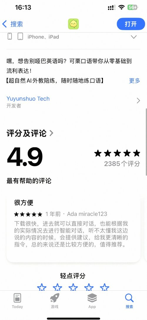 重新找回独立生活的尊严最动人的用户反馈来自广州的赵阿姨:「用可栗三个月,现在接孙女放学能跟老师简单交流了。上周老师夸孙女画画进步大,我居然听懂了还回了Thank you, she likes drawing at home(谢谢,她在家喜欢画画),老师惊讶的表情让我特别自豪!」这种独立沟通带来的尊严感,是可栗口语带给用户最珍贵的礼物。