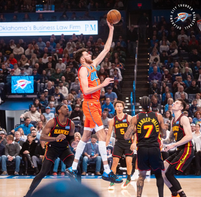 次节两队开始对攻,上半场打完老鹰这边三人上双,雷霆也是三人上双。沃克半场10分5助攻4篮板,奥孔古20分5篮板,丹尼尔斯11分3篮板,亚历山大21分3篮板,霍姆格伦11分7篮板,杰威12分2篮板,两队的分差只有3分,不过是雷霆落后老鹰3分。