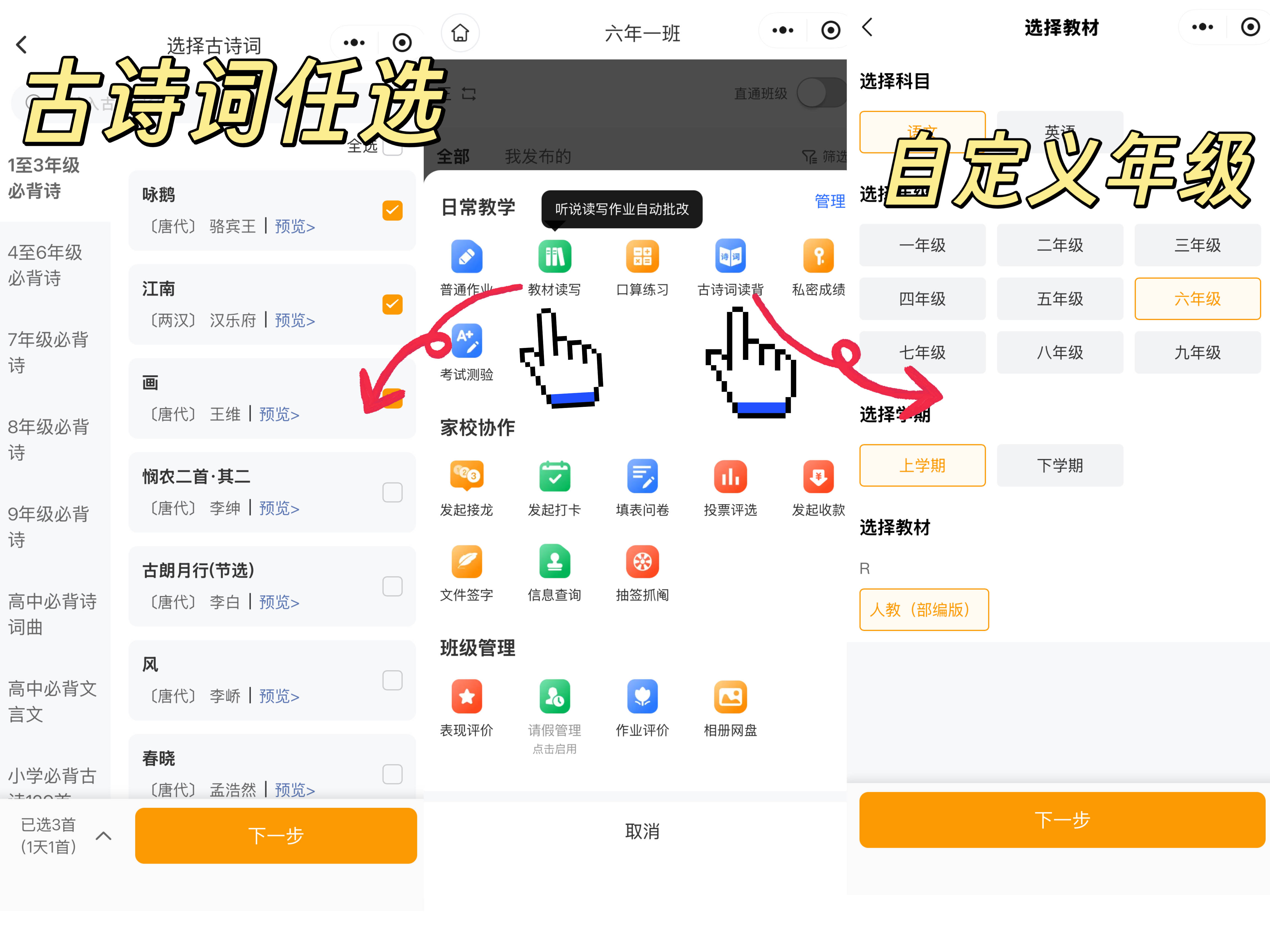 寒假可是预习的好时候!用接龙管家的 教材读写古诗词背诵 功能,提前带学生打卡语文、英语课本学习~