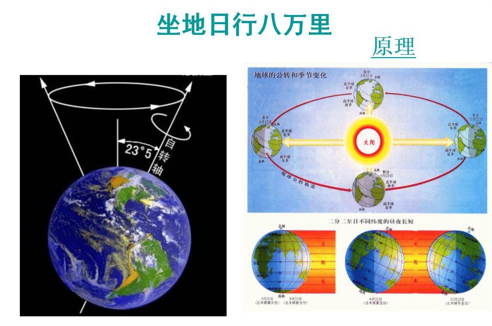 15.坐地日行八万里——由于地球的半径为6370千米,地球每转一圈,其表面上的物体”走”的路程约为40003.6千米,约8万里。 这是毛泽东吟出的诗词,它还科学的揭示了运动和静止关系——运动是绝对的,静止总是相对参照物而言的。