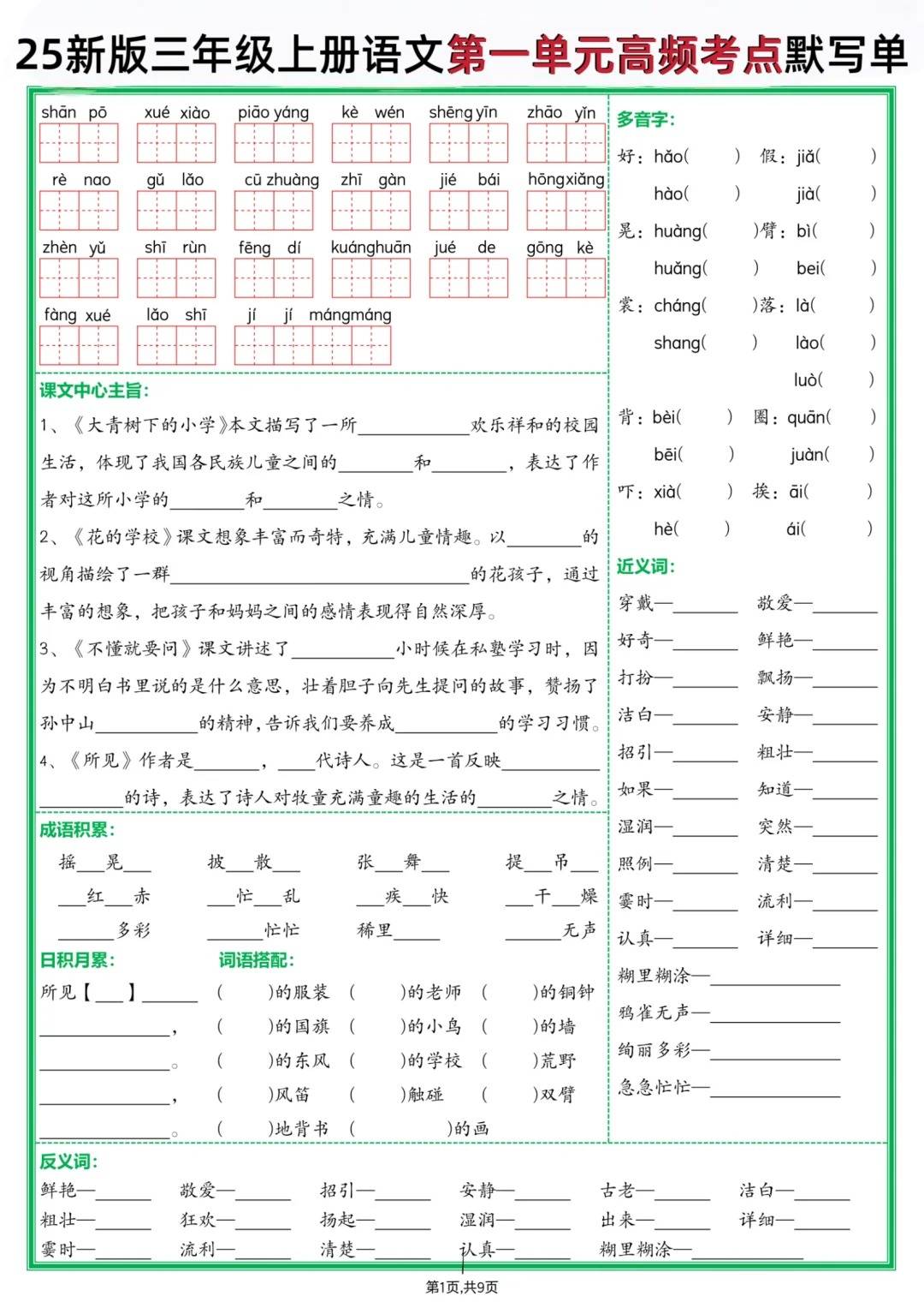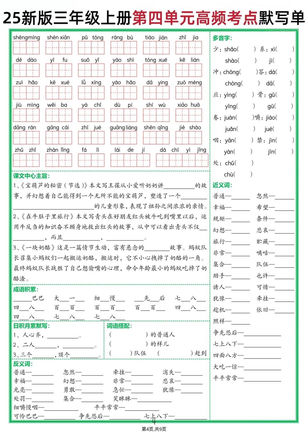 三年级的家长们是不是还在为孩子语文复习抓不住重点发愁?别慌!这份 25 新版三年级上册语文 1-4 单元高频考点默写单,简直是期中复习的救星✨