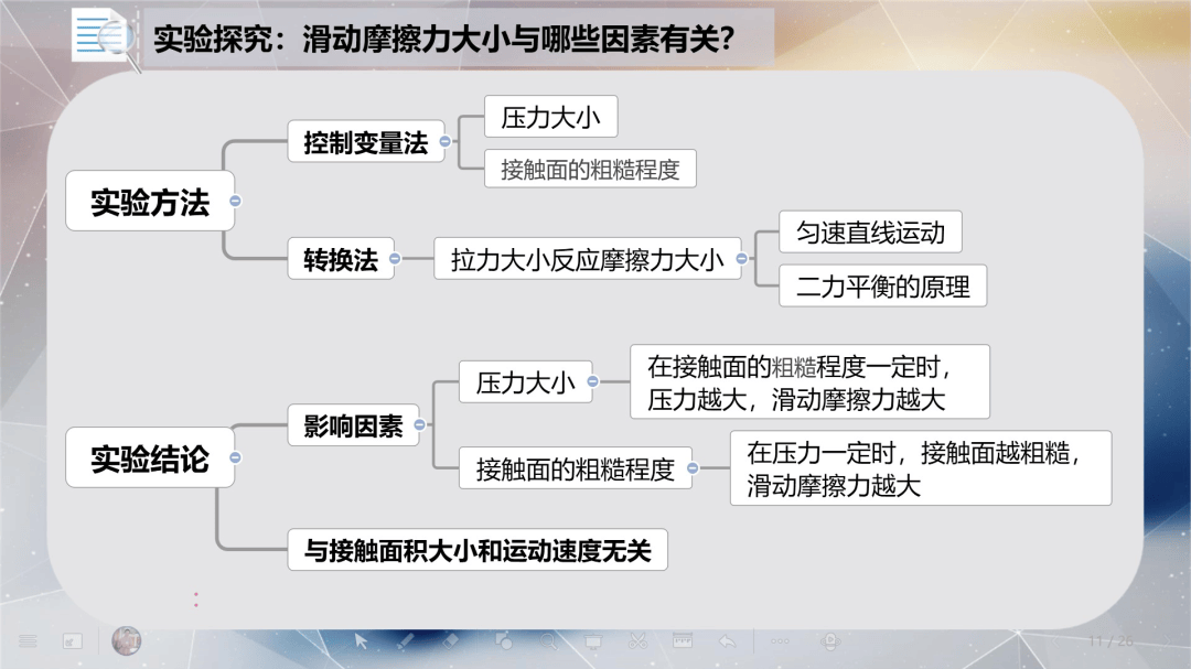 探究实验的普遍规律,避免实验存在偶然性。(如:探究压力的作用效果与哪些因素有关)