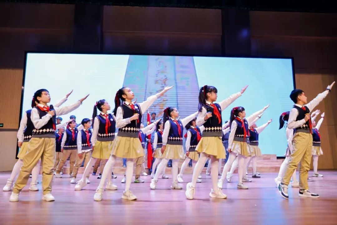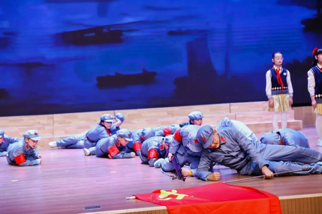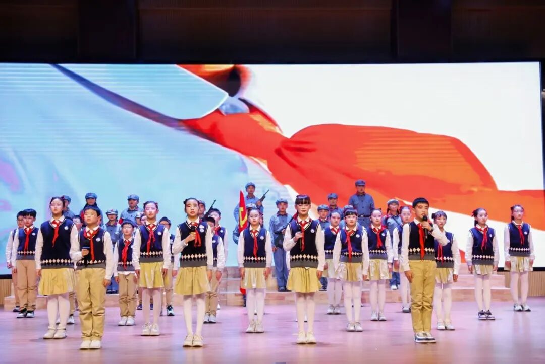 红色是信仰的颜色,诗歌是精神的火炬。五(4)班的情景朗诵激昂有力,在重温红色故事中坚定少年前行方向。
